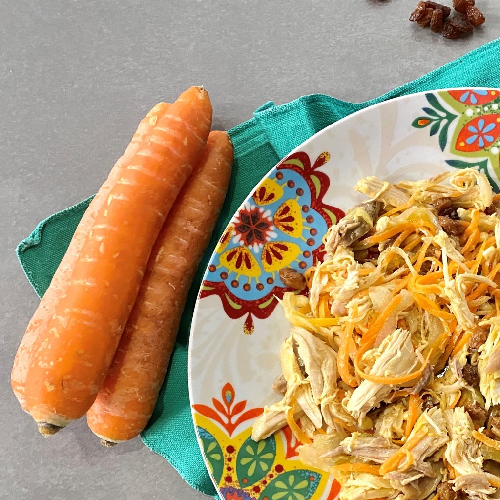 Gallina del Carmine bollita con sedano, carte e cipolla, spolpata a mano, fatta macerare una notte con carote, sedano e cipolle tagliate a julienne in agrodolce, uva sultanina, pinoli ed olio extravergine d’oliva