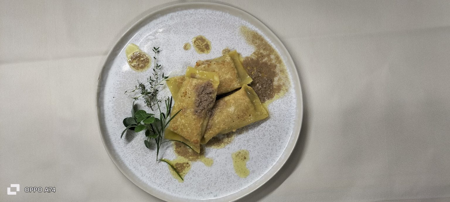 “Omaggio a Padova”: raviolo di Gallina padovana con ristretto di corte