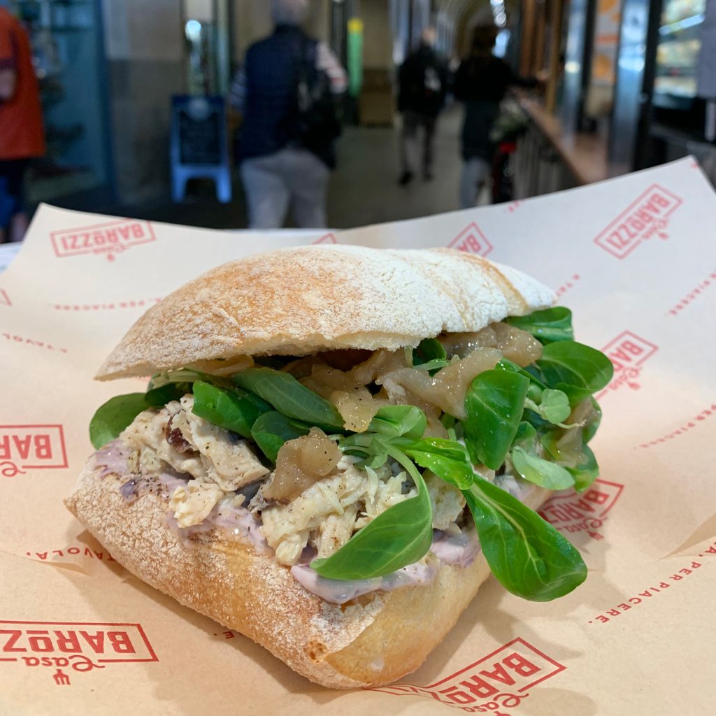 Panino “La Padovanella” con: insalata di gallina padovana con uvetta e pinoli,