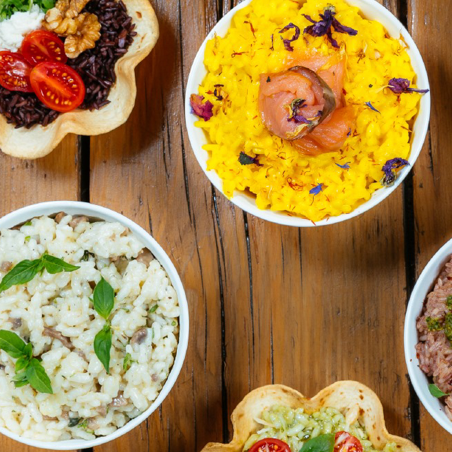 Risotto&Co porta a Padova, nella centralissima Piazza delle erbe, tutto il gusto di un piatto iconico della tradizione gastronomica italiana, rivisitato in chiave street Dai grandi classici, come il risotto ai funghi o allo zafferano ai più sfiziosi come il risotto alla carbonara fino al cacio e pepe con guanciale croccante, Risotto&Co vuole proporre una alternativa sia a pranzo che in orario aperitivo e cena al classico tramezzino o al toast Accanto ai risotti caldi, mantecati al momento, Risotto&Co propone anche bowl fredde per i mesi più caldi.